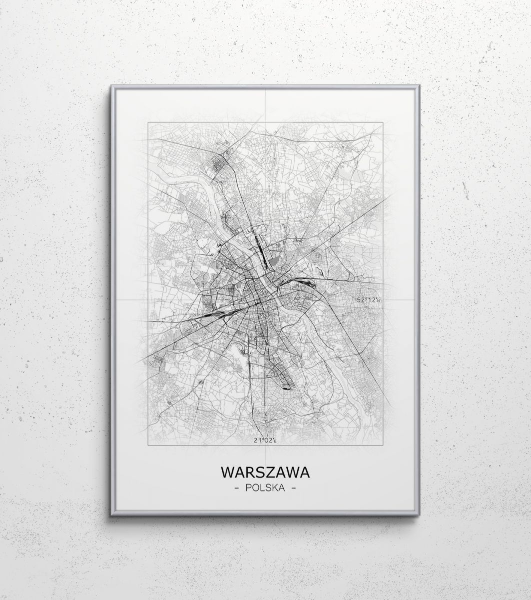Artystyczna mapa na ścianę, zatytułowana Warszawa - Czarno biała mapa Ciekawy i oryginalny plakat na ścianę. Wyprodukowany na papierze o wysokiej gramaturze w cyfrowej jakości. Plakat wykonany przez polskiego producenta. Świetnie nadaje się do oprawienia w ramy lub antyramy. Specyfikacja papier satynowy 220g/m2 druk cyfrowy wymiary plakatu 50x70 cm