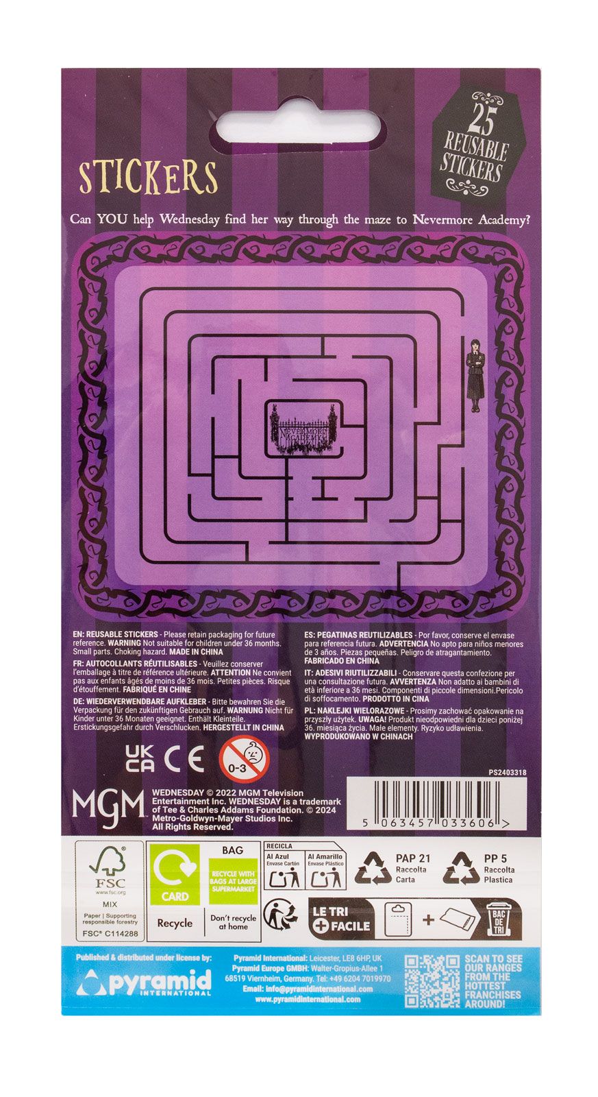Wednesday Team Wednesday - zestaw naklejek wielokrotnego użytku Stylizowany zestaw naklejek z motywami z serialu Wednesday to gratka dla fanów czarnego humoru i gotyckiego klimatu. W komplecie znajdziesz bohaterów, symbole i charakterystyczne elementy z produkcji Netflixa. Szczegóły techniczne: Rodzaj: Naklejki wielokrotnego użytku Zestaw: ok. 25 sztuk Wymiary arkuszy: 19,5x9,5 cm Oryginalny produkt z oficjalną licencją serialu Wednesday.