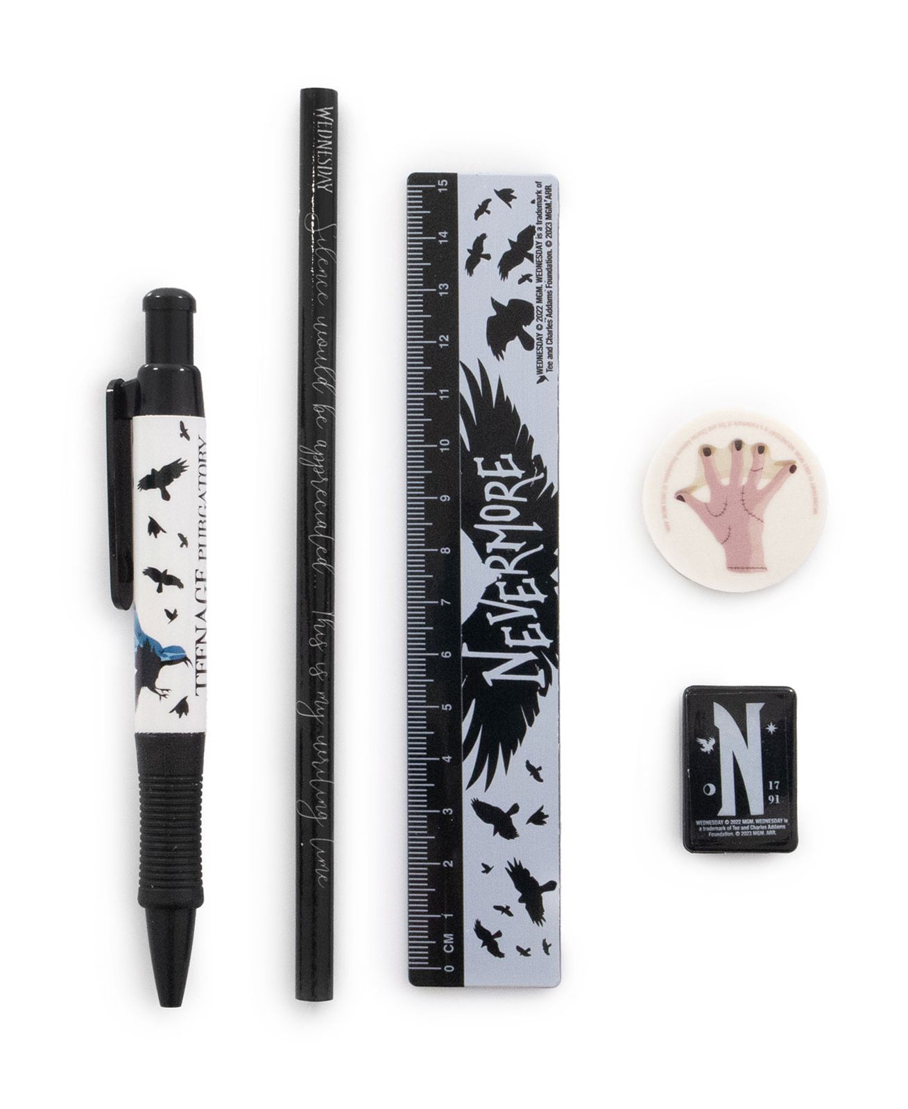 Zestaw przyborów szkolnych Wednesday Uniform Oryginalny zestaw przyborów szkolnych składających się z: ołówek długopis linijka gumka do mazania temperówka Idealny dla dzieci i młodzieży. Świetny pomysł na podarunek! Zestaw posiada oficjalną licencję producenta. Szczegóły techniczne: Marka: Pyrmid International