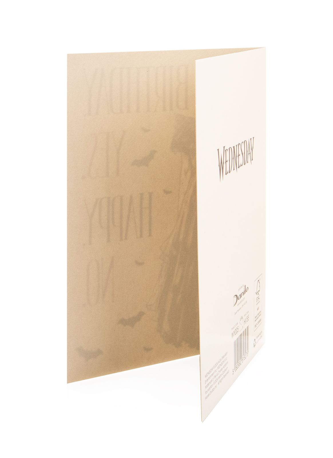 Wednesday - kartka urodzinowa Kartka Wednesday inspirowana popularnym serialem to ciekawa propozycja dla fanów mrocznego stylu. Gotycki motyw i nadrukowane życzenia wewnątrz czynią ją gotowym produktem sprzedażowym, który wyróżnia się na tle klasycznych kartek urodzinowych. Idealna jako dodatek do prezentu dla młodzieży i dorosłych fanów serii. Szczegóły produktu: Format: 13 x 18 cm Motyw: Wednesday Wnętrze: z nadrukowanymi życzeniami Oficjalny produkt z licencją Kartka na oficjalnej licencji Wednesday - oryginalny produkt o unikalnym klimacie, atrakcyjny w ofercie urodzinowej.