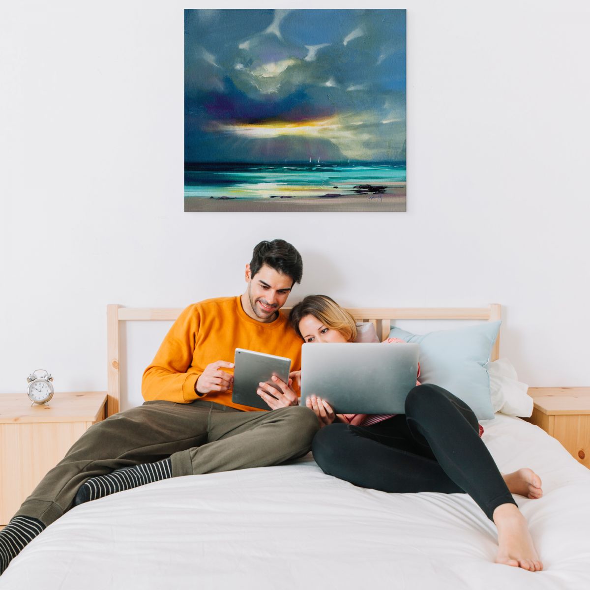 Dzięki lakierowanej powierzchni kolory pozostają żywe przed długi czas. Gruba rama wykonana z wysokiej jakości drewna sosnowego sprawia, że obraz jest solidny oraz wytrzymały i jednocześnie lekki.