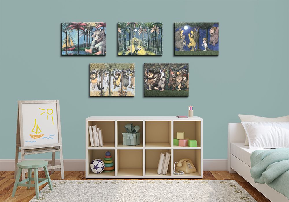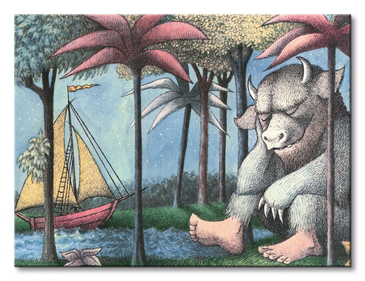 Obraz na ścianę noszący nazwę Where the Wild Things are. Autorstwa: Maurice Sendak Szukasz oryginalnego obrazu na ścianę? Wybierz jeden z naszej kolekcji! trwałe kolory i fantastyczna jakość., obrazy charakteryzuje wysokie nasycenie barw i ostrość, nie sposób oderwać od nich wzrok. Dzięki lakierowanej powierzchni kolory pozostają żywe przed długi czas. Bawełniane płótno wysokiej jakości gwarantuje świetne odwzorowanie i trwałość obrazu.
