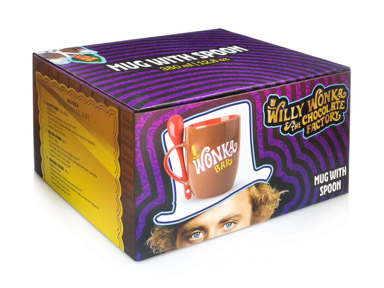 Willy Wonka - kubek z uchem Nasz kubek z uchem z ulubionym motywem to idealny pomysł na urozmaicenie kuchennej zastawy, oraz świetny pomysł na prezent dla bliskiej osoby. W zestawie znajduje się ceramiczna łyżeczka, na którą kubek posiada uchwyt Nasz produkt jest markowy, posiada oryginalną licencję Jest stworzony z najwyższej jakości porcelany,to gwarancja koloru o wysokim połysku Grafika na kubku jest trwała, w cyfrowej jakości Można myć go w zmywarce i podgrzewać w mikrofalówce Szczegóły techniczne: pojemność 350 ml