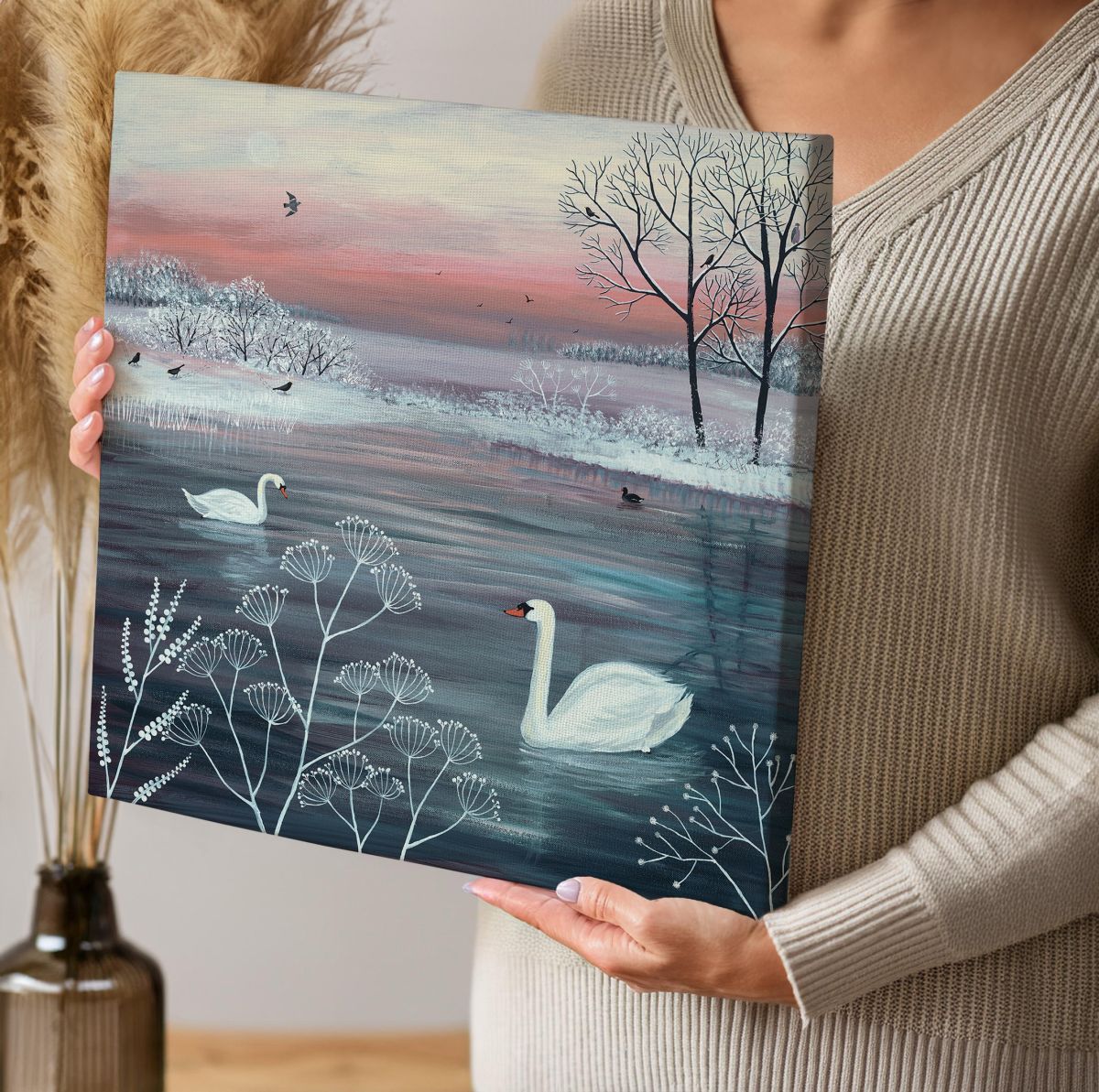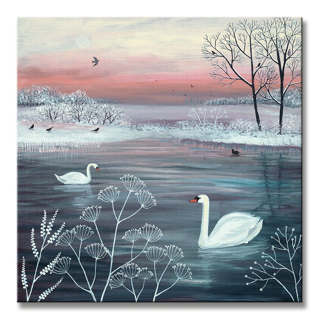 Obraz na ścianę noszący nazwę Winter Serenity. Autorstwa: Jo Grundy Szukasz oryginalnej, ekskluzywnej dekoracji na ścianę? Ten obraz jest dla Ciebie! nasycone kolory i doskonała jakość., obrazy charakteryzuje wysokie nasycenie barw i ostrość, nie sposób oderwać od nich wzrok. Kolory utrzymują się przez długie lata. Mocne bawełniane płótno wygląda naturalnie i oddaje charakter autentyczności obrazu.