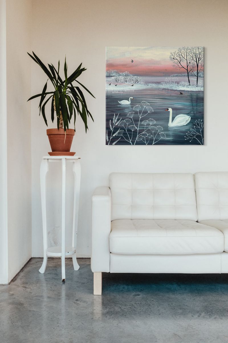 Obraz na ścianę noszący nazwę Winter Serenity. Autorstwa: Jo Grundy Szukasz oryginalnej, ekskluzywnej dekoracji na ścianę? Ten obraz jest dla Ciebie! fantastyczne kolory i rewelacyjna ostrość., obrazy charakteryzuje wysokie nasycenie barw i ostrość, nie sposób oderwać od nich wzrok. Kolory utrzymują się przez długie lata. Mocne bawełniane płótno wygląda naturalnie i oddaje charakter autentyczności obrazu.