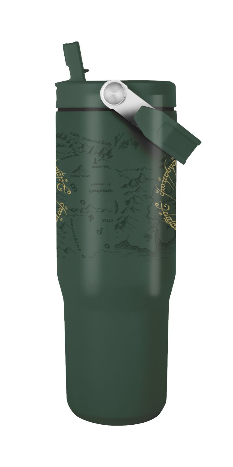 The Lord of the Rings - kubek termiczny Numer katalogowy: MDB2404264 Producent: Pyramid International Kubek termiczny The Lord of the Rings wykonany ze stali nierdzewnej z motywem inskrypcji Jedynego Pierścienia. Pojemność 850 ml i szczelne zamknięcie z ustnikiem czynią go praktycznym i wytrzymałym gadżetem